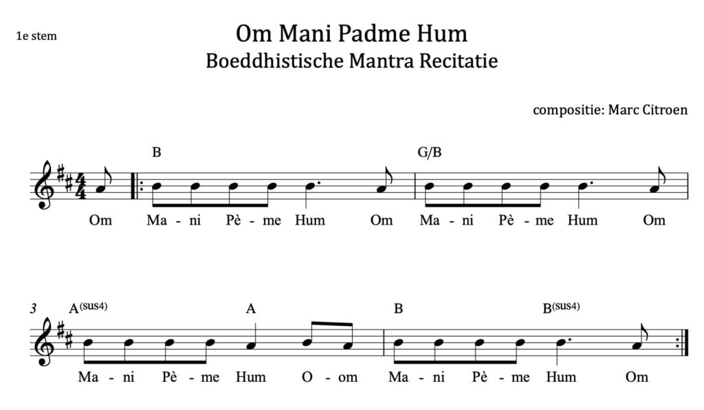 In de meeste bladmuziek met songs, mantra's en chants zie je zoiets als dit: